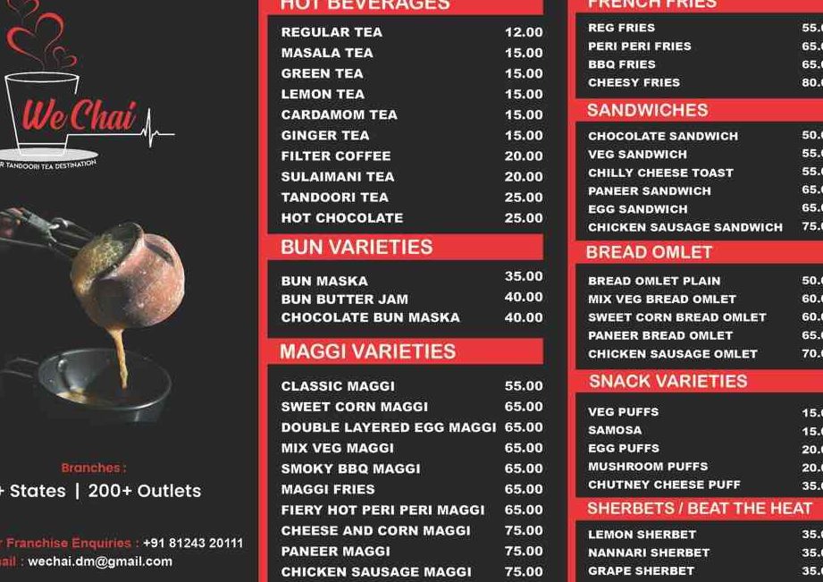 For the most up-to-date information, including the full menu and any special offerings, you can visit their official website at https://wechai.co.in/. The website is the best resource to explore their offerings before your visit.